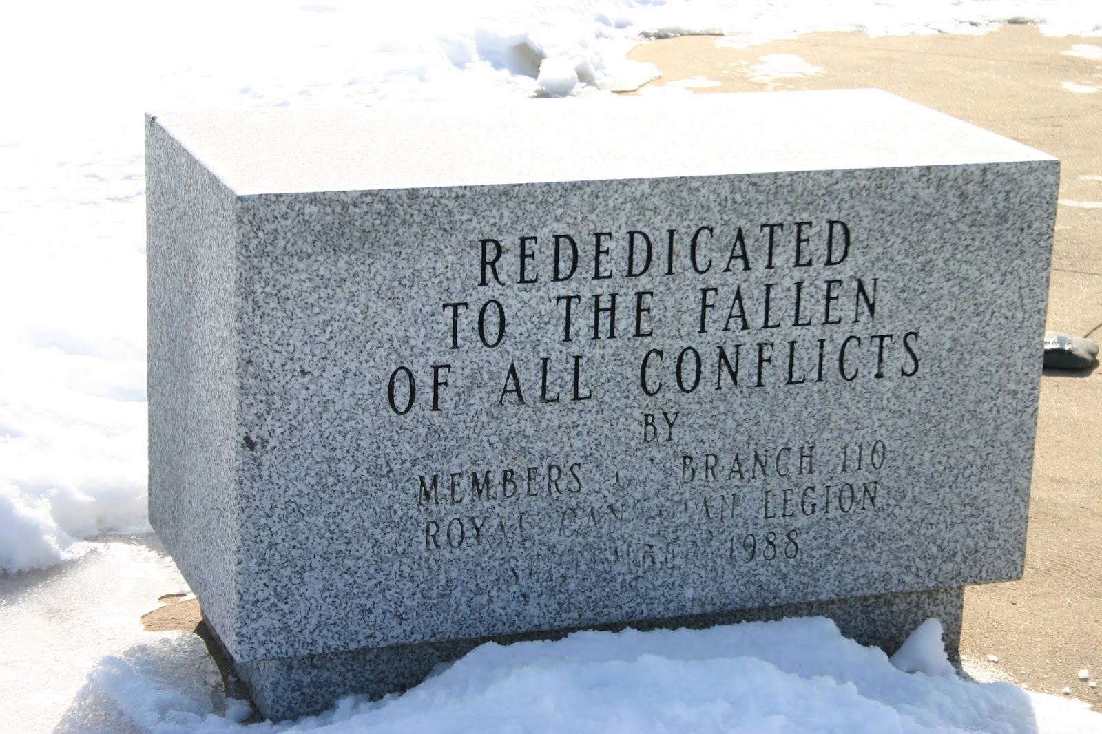 In 1988, it was rededicated in memory of the fallen of all conflicts. Two benches were added: one for the rededication and the second dedicated to the six crew lost in the sinking of HMCS Trentonian.