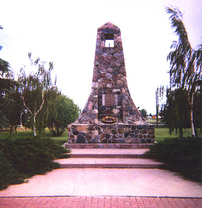 This memorial was erected by the Vermilion Branch of the Great War Veterans’ Association (later the Royal Canadian Legion Branch No. 11) and unveiled 4 August 1930. It was built by William “Scotty” Swanson. An inscription to the local war dead of the Second World War was added during the post-war period. Currently it is used for the local Remembrance Day services.