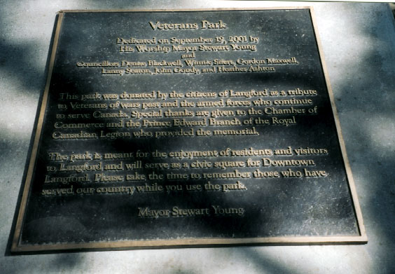Excerpts from the brochure of the Veterans Memorial Park, Prince Edward Branch #91, The Royal Canadian Legion, Langford, BC:L