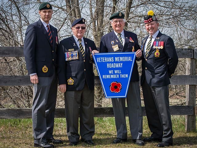 Peel's Dixie Road was commemorated as Veterans Memorial Roadway with the first sign unveiled in May of 2016. Local Legion members helped choose the road for commemoration and provided input on the signage. The idea was suggested about two years previous by then mayor Marolyn Morrison. Morrison has two sons in the military and both did tours in Afghanistan.