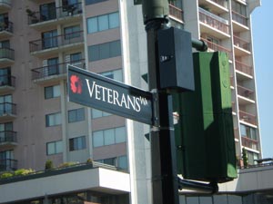 At the request of Stan Leshart, the Street naming Committee of The Corporation of the City of North Vancouver made a decision in 2009 to name the 100 block of West 15th Street, 'Veterans Way' in honour of those who have given their lives and those who continue to protect the people in need.