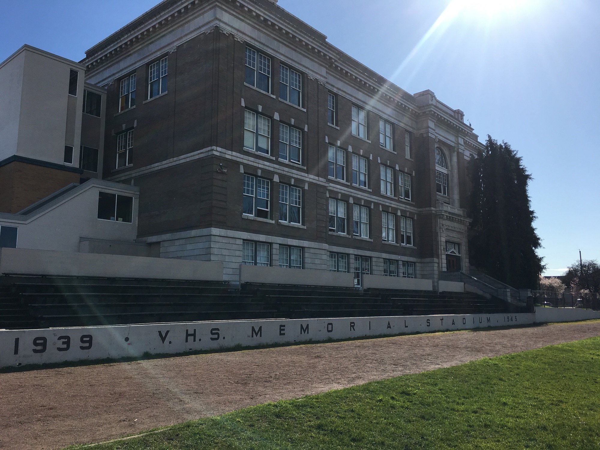 In the Spring of 1948, Victoria High School students and staff raised funds to create a track and field complex to honour those that had served in the Second World War. Completed in 1949, the facility was known as Memorial Stadium.