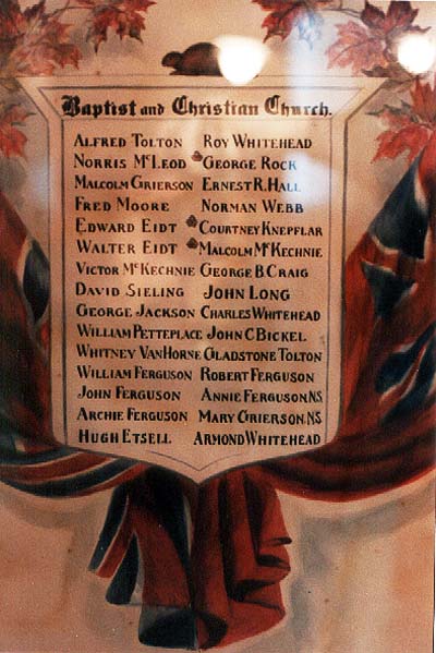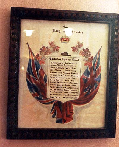 This memorial is dedicated to those from Walkerton Baptist Church who served in the First and Second World Wars.