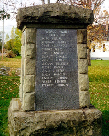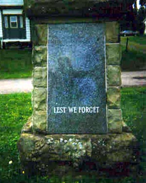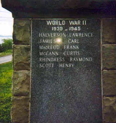 The Wallace War Memorial was erected in 1959, in memory of all those who have served their country and those who gave the supreme sacrifice in the First and Second World Wars. The Memorial was designed by Comrade Charles McCoull. The Monument is of Wallace sandstone with panels of granite. The cutting and erecting of the stone were done by local contractors, Gordon Dewar and Roy Flynn. Each year on the eve of June 30th, Canada Day events begin at the Cenotaph with the Nations Prayer, Wreath laying and Parade to the Community Centre. Involved are, Legion Branches from Pugwash, Tatamagouche and Wallace; RCMP members; Wallace Fire Department; Boy Scouts and Girl Guides associations. This is followed by entertainment, refreshments and fire works. There is an annual Remembrance Day Service held at the Monument on the 11th hour. The Service is attended by, Seaside Branch Royal Canadian Legion No. 104 , RCMP, Fire Departments, Boy Scouts and Girl Guides, also a large number of local citizens.