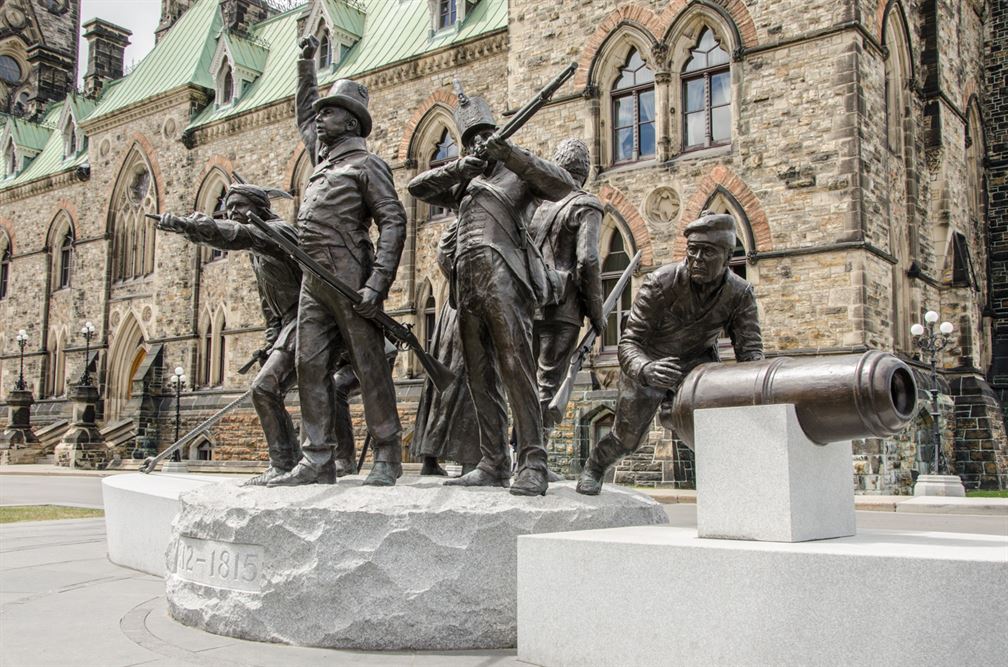 The War of 1812 Monument, Triumph Through Diversity sits on Parliament Hill, at the South East corner of East Block, facing the National War Memorial. It is dedicated to the people who defended Canada during the War of 1812 and was unveiled on November 6, 2014.