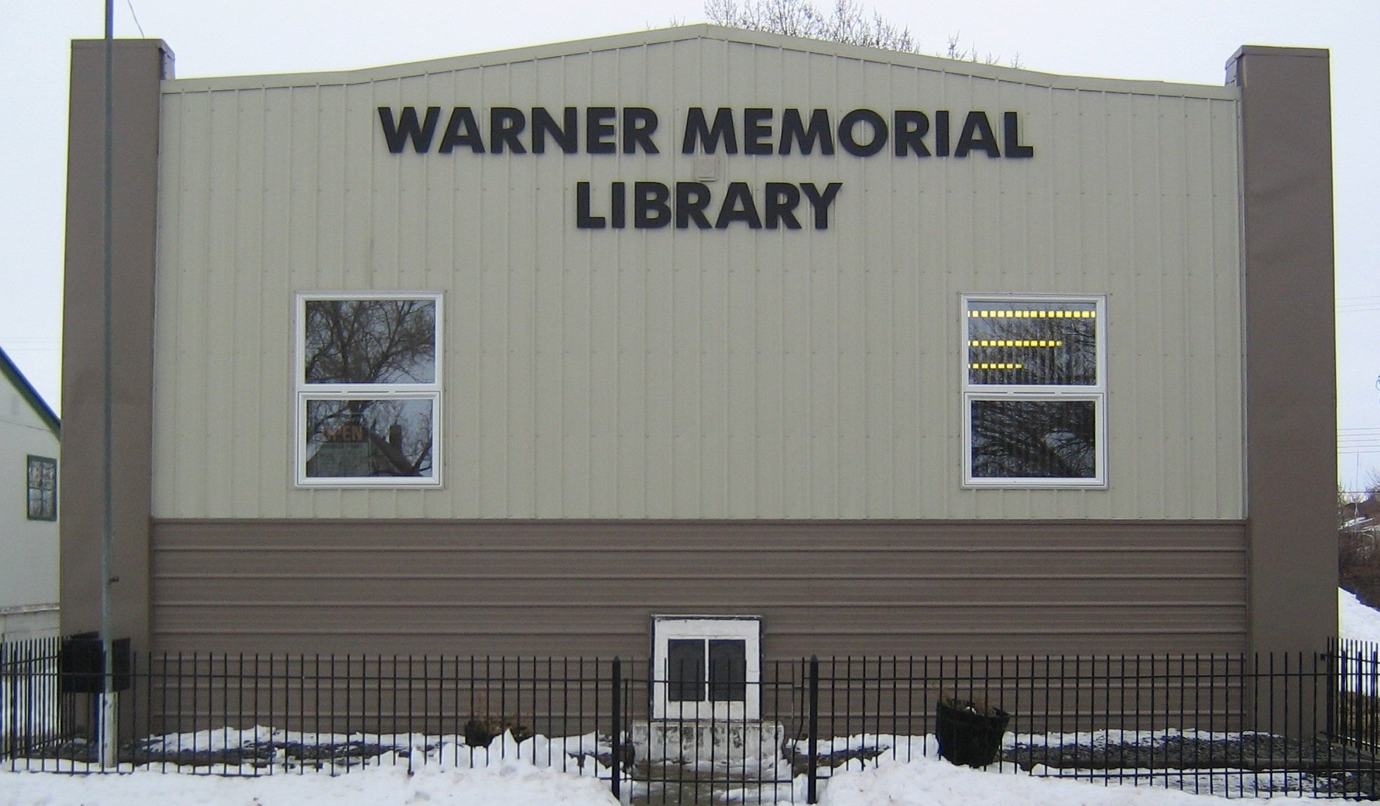 In the summer 1945, a motion was passed that would lead to the establishment of the Warner Memorial Library. A committee solicited the help of the community who responded enthusiastically. In 1945, the library was incorporated and throughout 1946, money and books were donated. The Elks Club made the ladies' cloak room in their hall available to house the 650 donated books and on March 29, 1947, the library was operating.