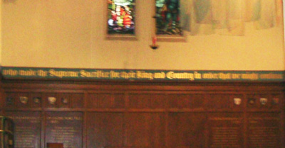To the glory of God. This Warriors` Chapel was erected in grateful remembrance of those members of St John`s Church serving in the Armed Forces who made the supreme sacrifice for their King and country in order that we might continue to live in that freedom which is, by the grace of God, our rightful heritage. Dedicated in the year of our Lord, one thousand nine hundred and fifty.
