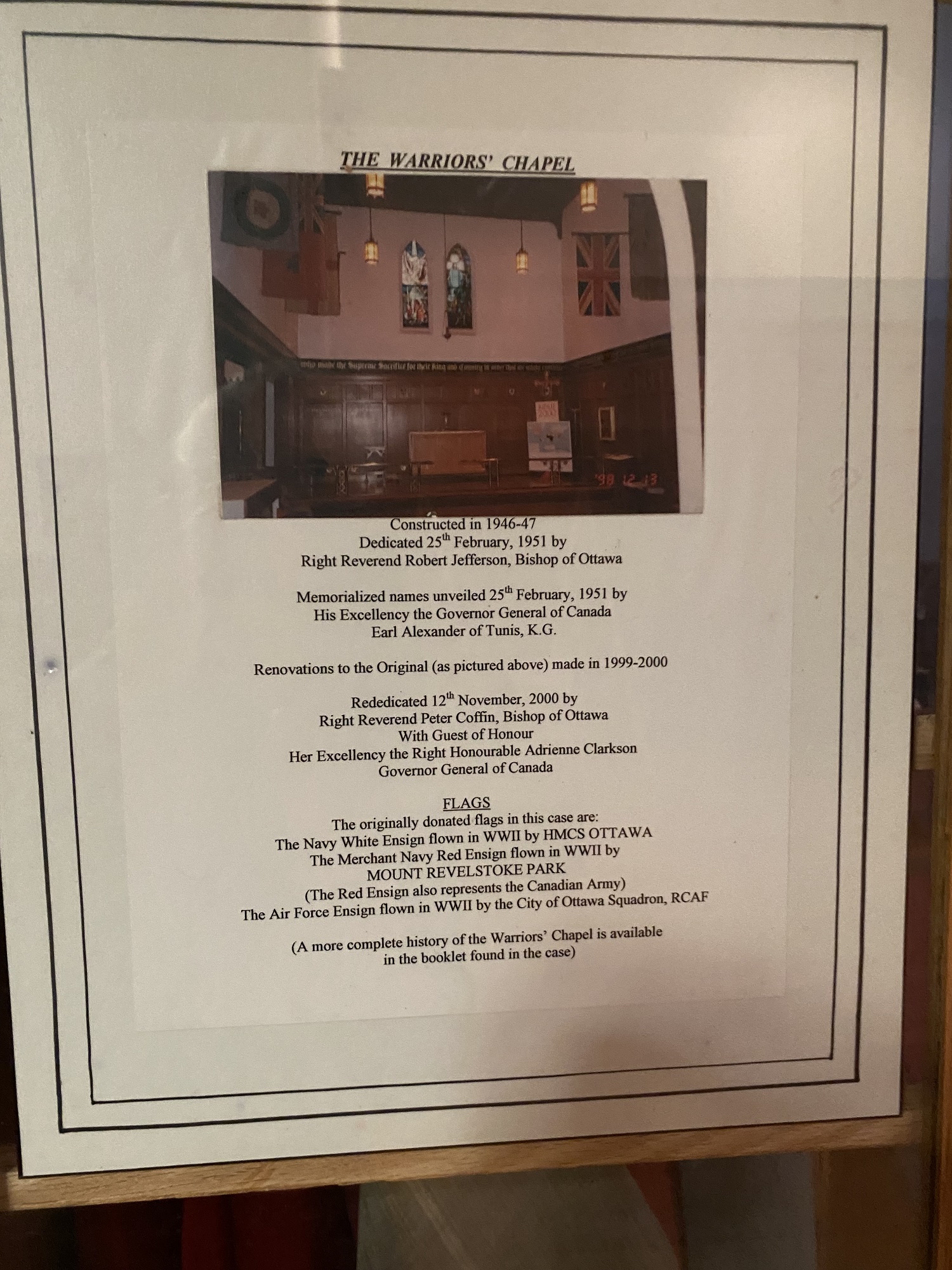 (A more complete history of the Warriors` Chapel is available in the booklet found in the case)