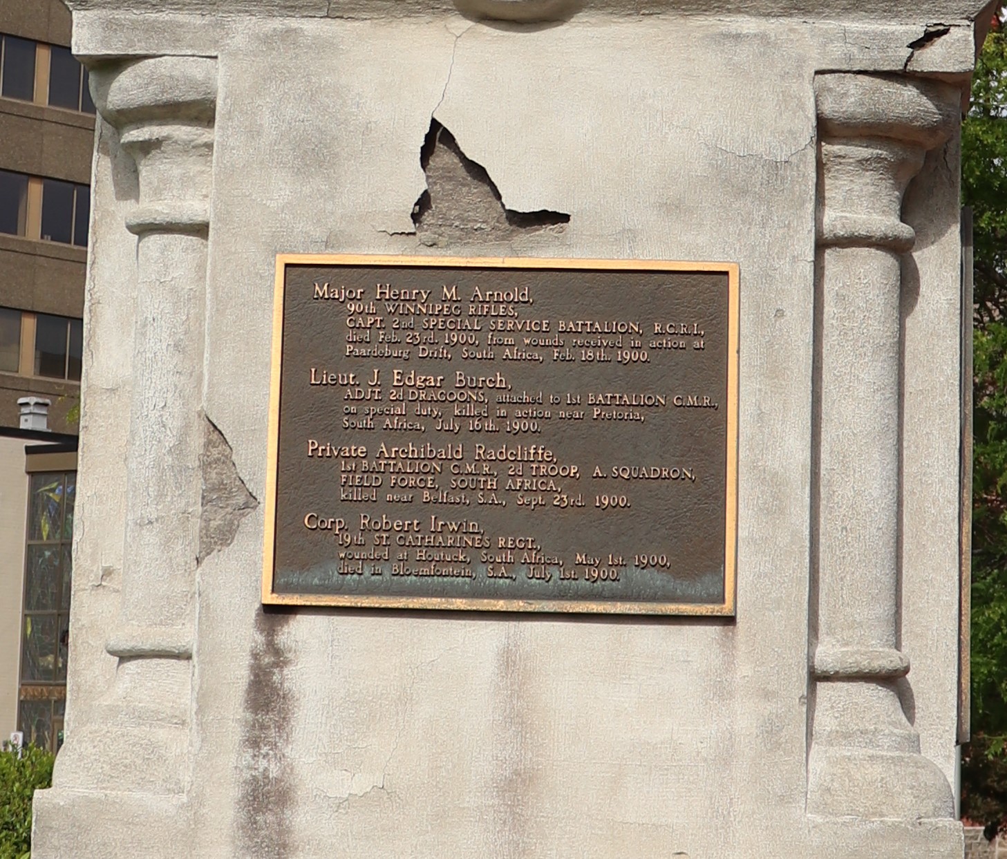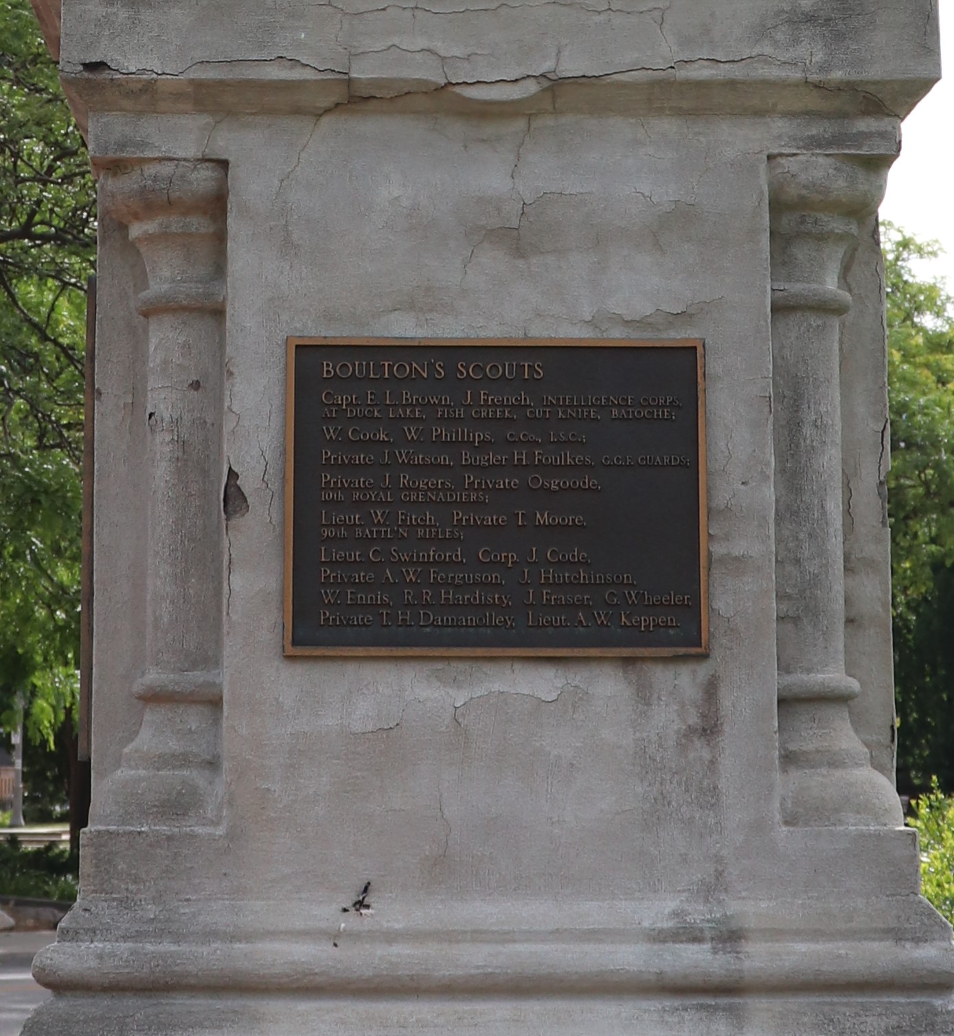 Watson’s Memorial continued to be the only war memorial in the community for the rest of the 19th Century. As such, when the community sent soldiers to participate in the Boer War in 1899, local soldiers who fell in that conflict were also memorialized on the side of Watson’s Monument.