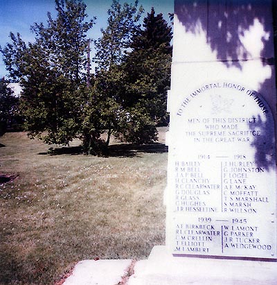 This memorial, erected by Royal Canadian Legion Branch No. 112 (Welwyn), is dedicated to the local war dead of the First and Second World Wars.