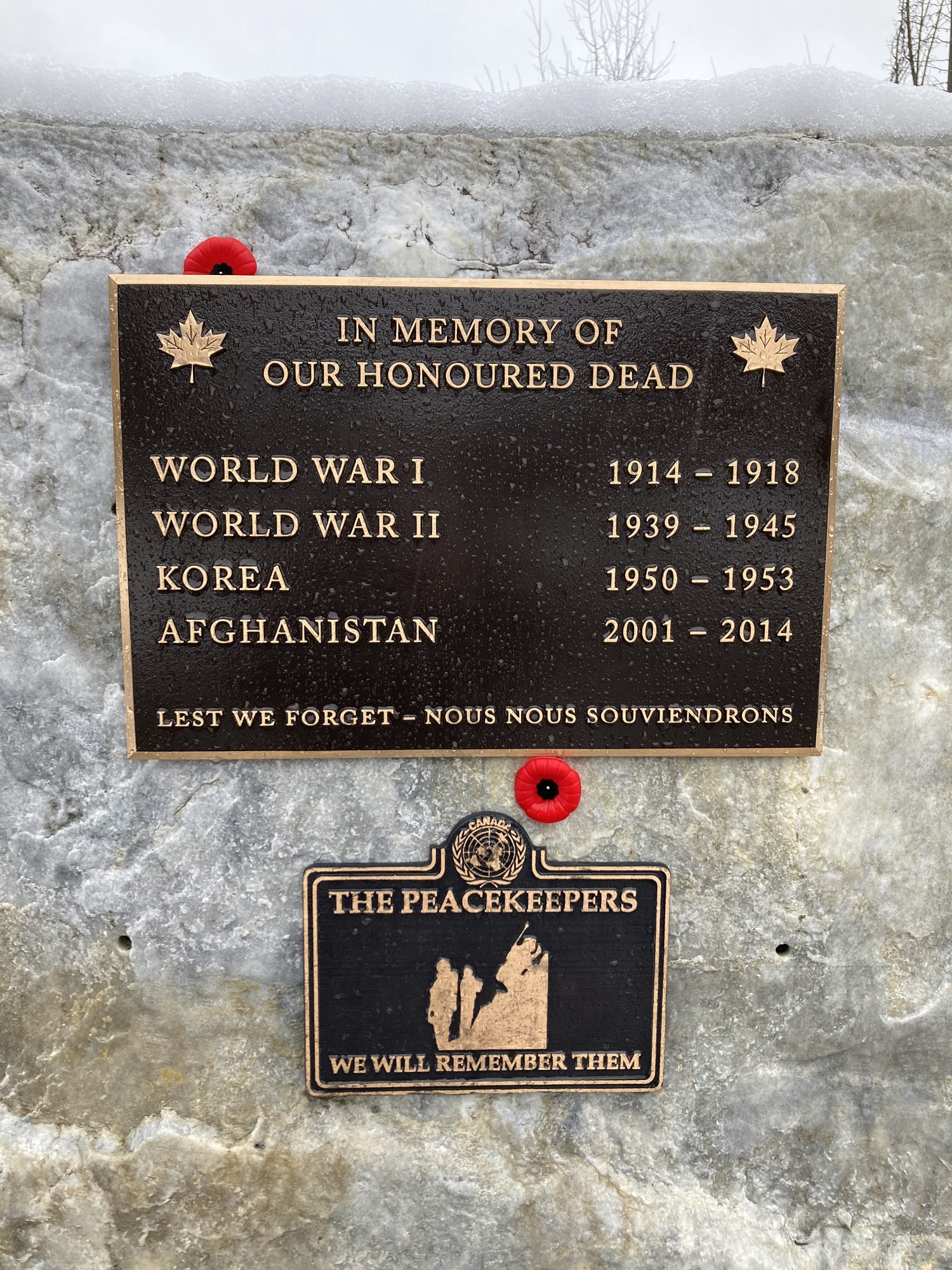 The Whistler Cenotaph was installed outside of the Whistler fire hall in 1985. It was commissioned by the Rotary Club of Whistler to honour the soldiers of the First and Second World Wars and the Korean War. The stone came from a quarry off the Duffey Lake Road and was installed by Art Den Duyf. It was unveiled on November 11, 1985, by Mayor Terry Rodgers and dedicated by then-Rotary Club president Floyd Leclair. The ceremony occurred just three days after the cenotaph’s installation was completed.