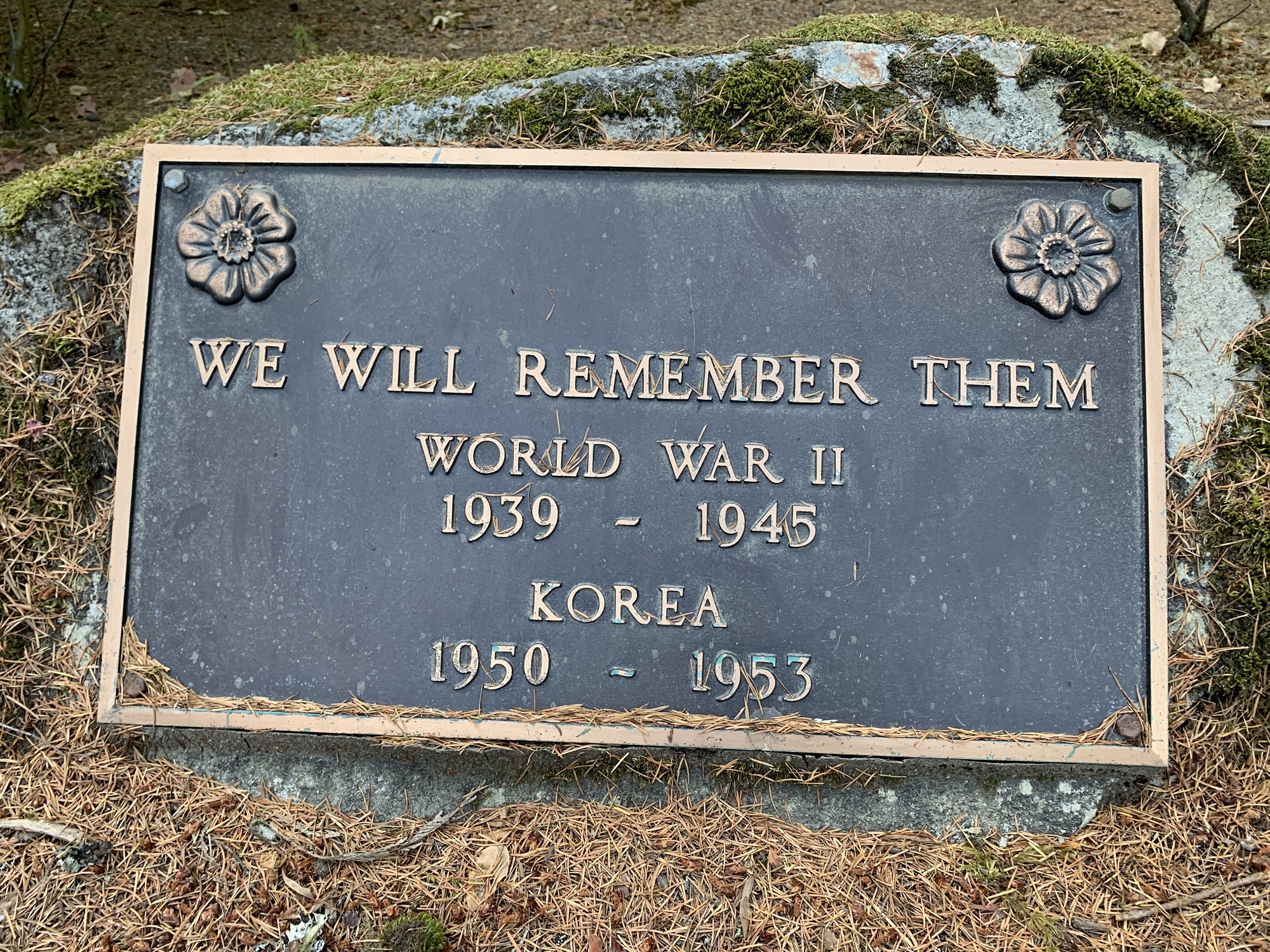 Sometime after the Whonnock First World War Memorial Plaque was moved to the Whonnock Lake Centre in 1988, this plaque honouring those who have served in the Second World War and the Korean War was placed there as well.