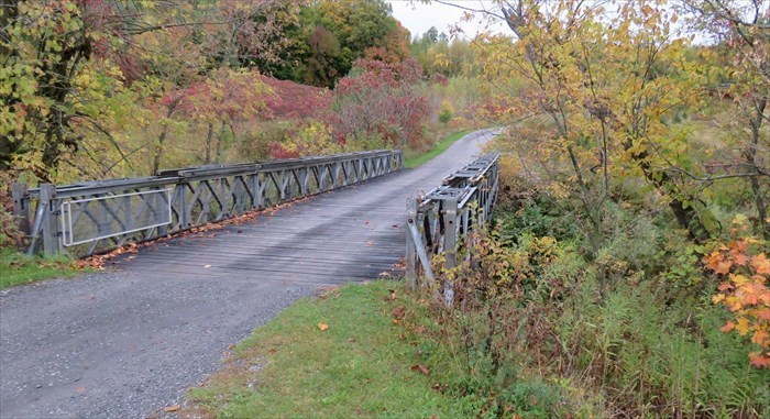 This bridge was built by 3rd Field Engineer Regiment, Royal Canadian Engineers and dedicated on 30 October 1994 to Warrant Officer II Walter "Rocky" Leja, GM, CD, a former Regimental Sergeant Major of 3rd Field Engineer Regiment in Montreal, Quebec. The bridge spans Cournoyer Creek.