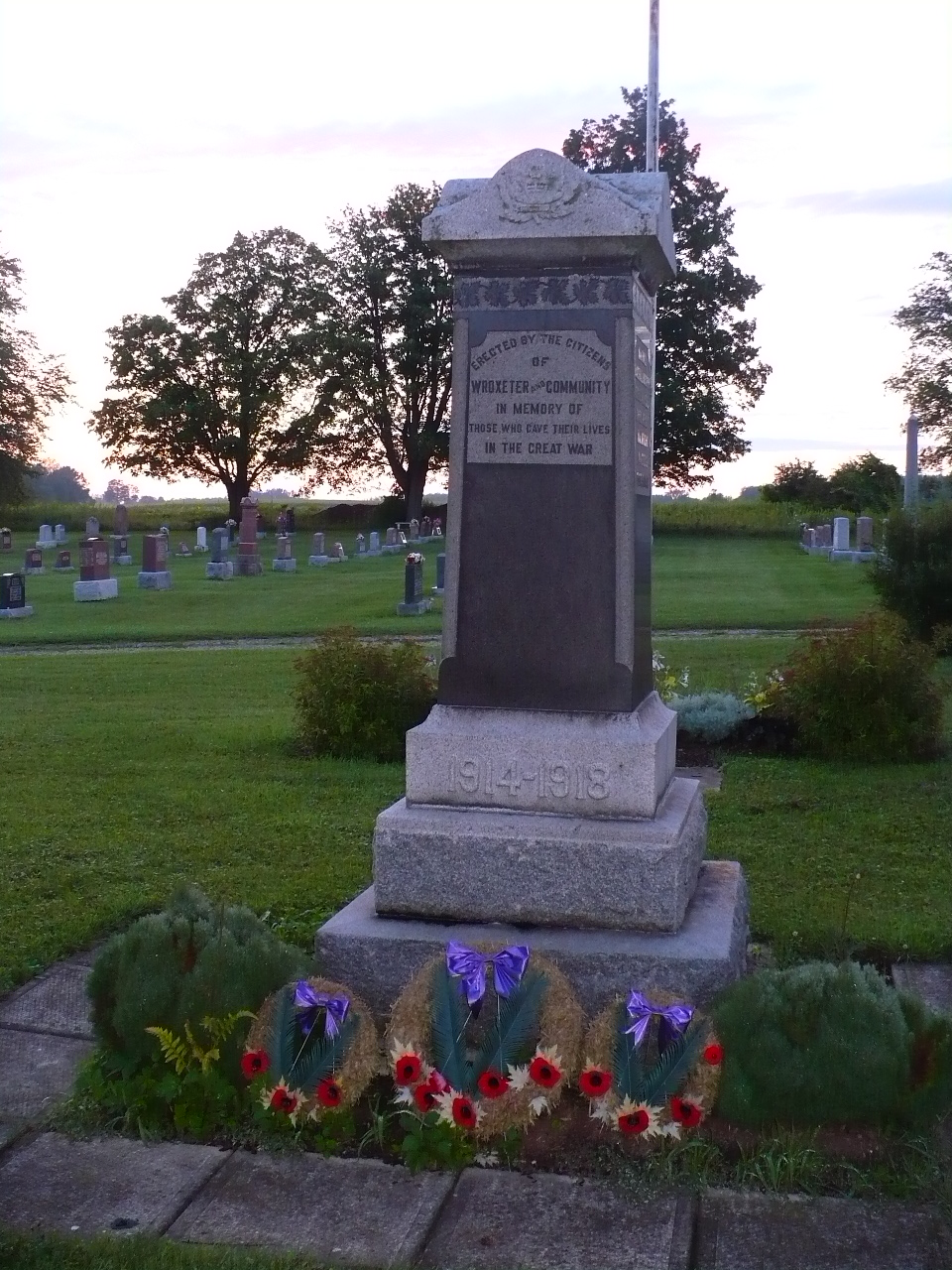 The soldier monument in Fordwich was unveiled less than a year earlier on Armistice Day 1920. It was meant to be the township’s record of heroism, but 11 names of Wroxeter men were not included. The people of Wroxeter area sought to complete the record by erecting their own monument to the district’s fallen.
