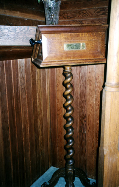 "THE STEM OF THIS LECTERN I SAVED FROM