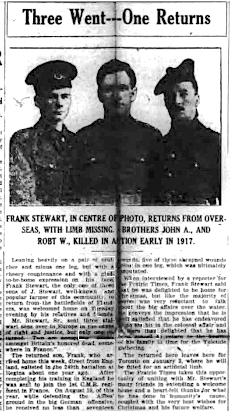 Son of John and Annie M. Stewart, of Druid, Saskatchewan. Native of Banffshire, Scotland.