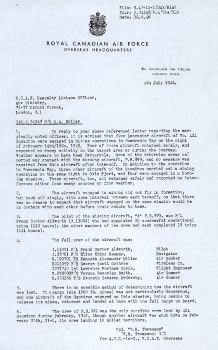 Pilot Officer Kenneth Alexander Miller