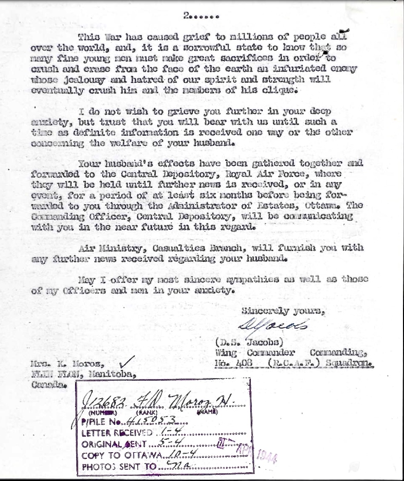 Son of Alexander and Nettie Moroz of Transcona, Manitoba.