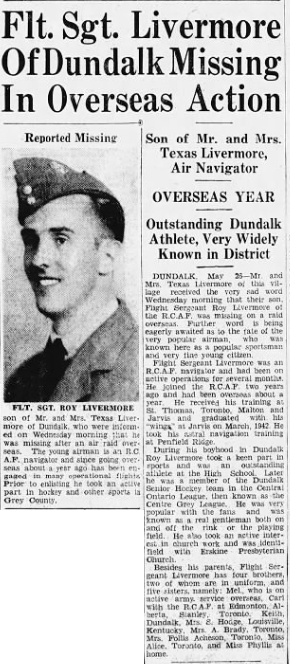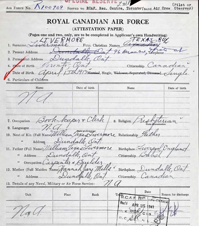 Son of William Texas Livermore and Hannah Jane Livermore (née Mills). Brother of Pilot Officer Carl Herman Livermore, J95258, 76 Squadron, Royal Canadian Air Force deceased 25 April 1945.