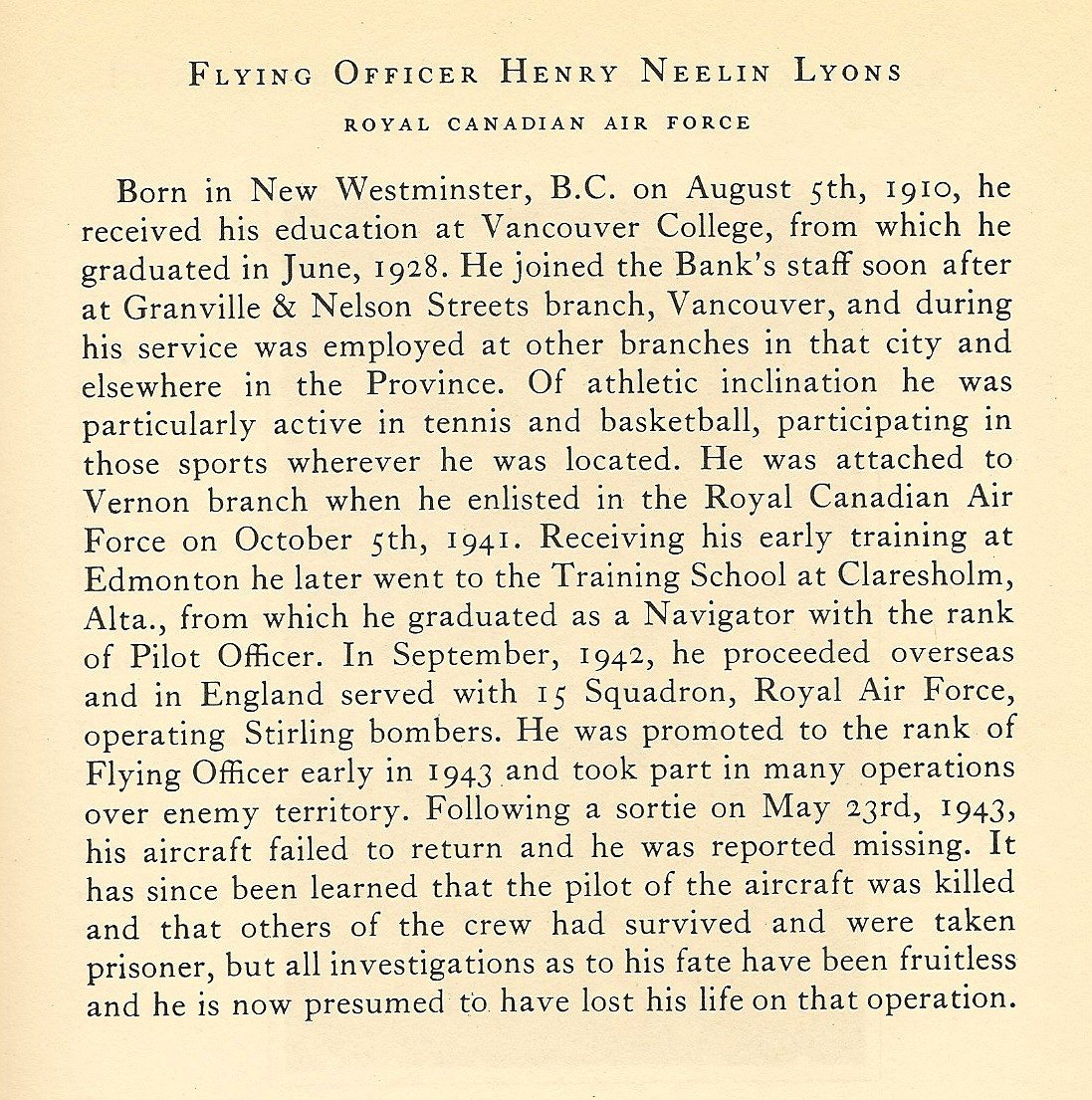 Digital gallery of Flying Officer Henry Neelin Lyons