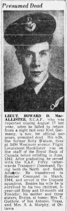 Flight Lieutenant Harvard Darrell Frederick MacAllister