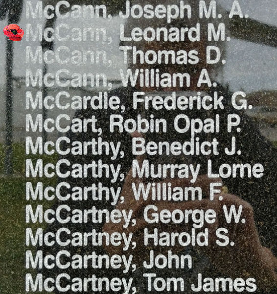 Son of Daniel and Hannah McCann (1952 National Memorial (Silver) Cross Mother) of Ottawa, Ontario.
