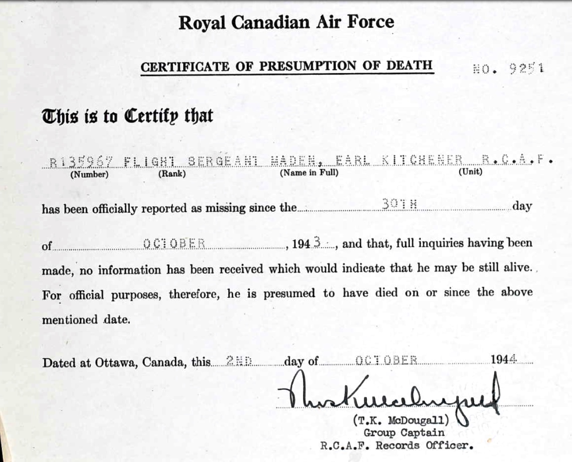 Digital gallery of Flight Sergeant Earl Kitchener Maden