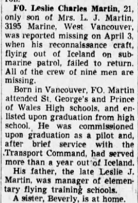 Digital gallery of Flying Officer Leslie Charles Martin