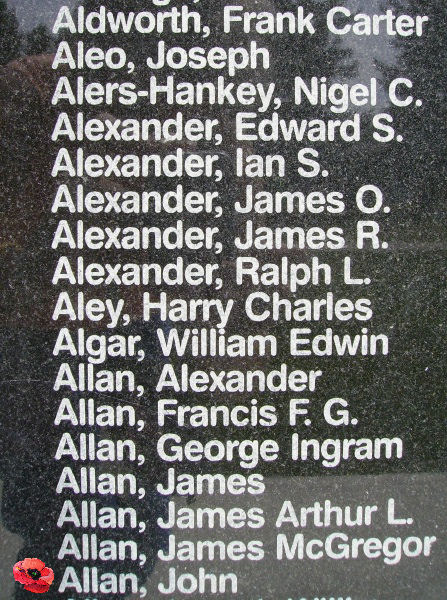 IN THIS CLOISTER ARE RECORDED THE NAMES OF TWENTY THOUSAND AIRMEN WHO HAVE NO KNOWN GRAVE. THEY DIED FOR FREEDOM IN RAID AND SORTIE OVER THE BRITISH ISLES AND THE LANDS AND SEAS OF NORTHERN AND WESTERN EUROPE