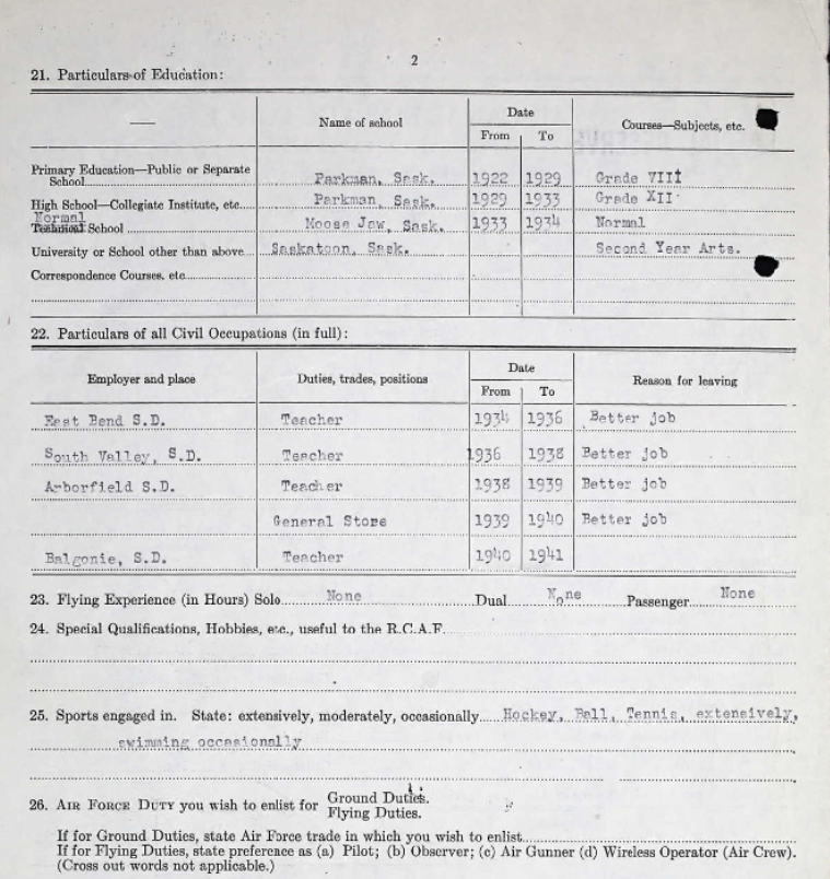 He was a school teacher at Balgonie, Saskatchewan before enlisting and was married to a British girl by the name of Patty.