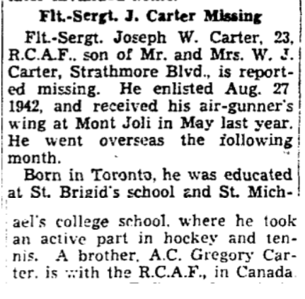 Son of William J. and Olive Carter, of Toronto, Ontario.