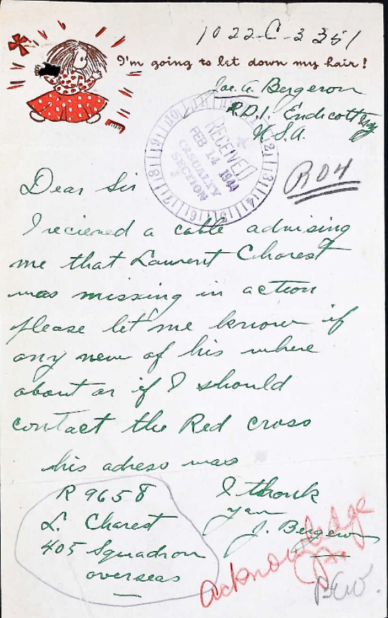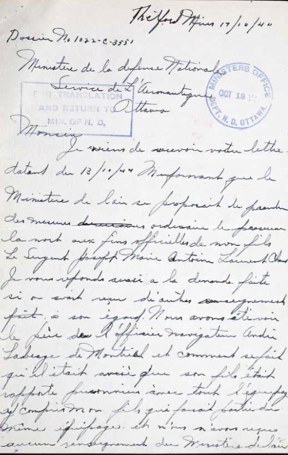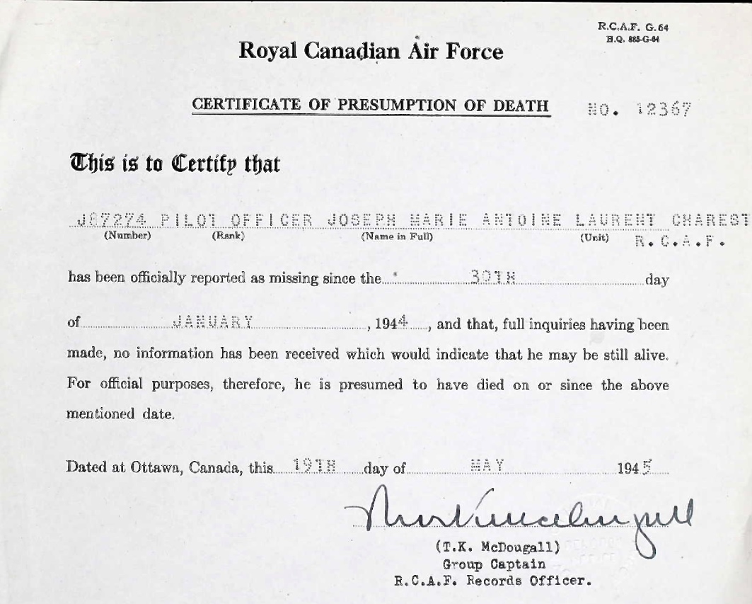 He was a soldier in the Régiment de la Chaudière in Mégantic, Quebec, from November 22, 1940 to December 21, 1940 under the NRMA of 1940. He signed Laurent Charest.