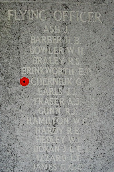 During the Second World War more than 116,000 men and women of the Air Forces of the British Commonwealth gave their lives in service. More than 17,000 of these were members of the Royal Canadian Air Force, or Canadians serving with the Royal Air Force. Approximately one-third of all who died have no known grave. Of these, 20,450 are commemorated by name on the Runnymede Memorial, which is situated at Englefield Green, near Egham, 32 kilometers by road west of London.