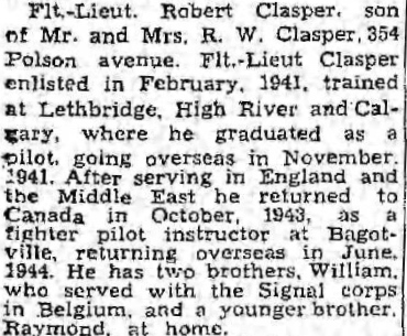 Son of Robert William and Mary Elizabeth Clasper, of Winnipeg, Manitoba, Canada.