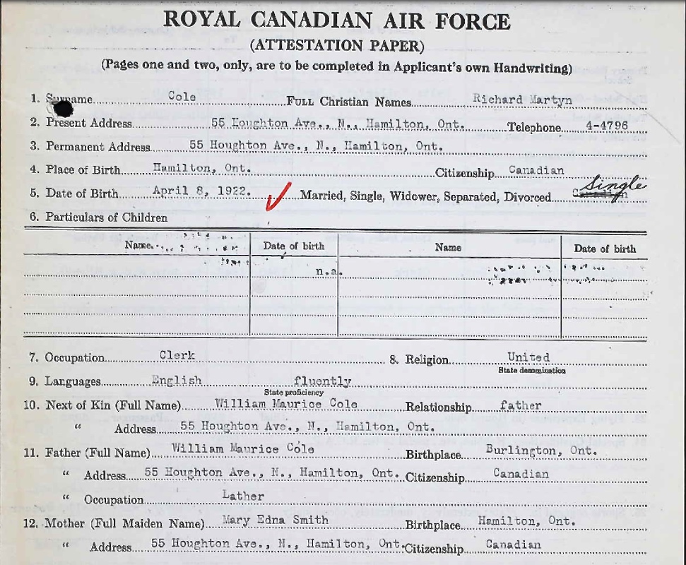 Digital gallery of Flight Sergeant Richard Martyn Cole
