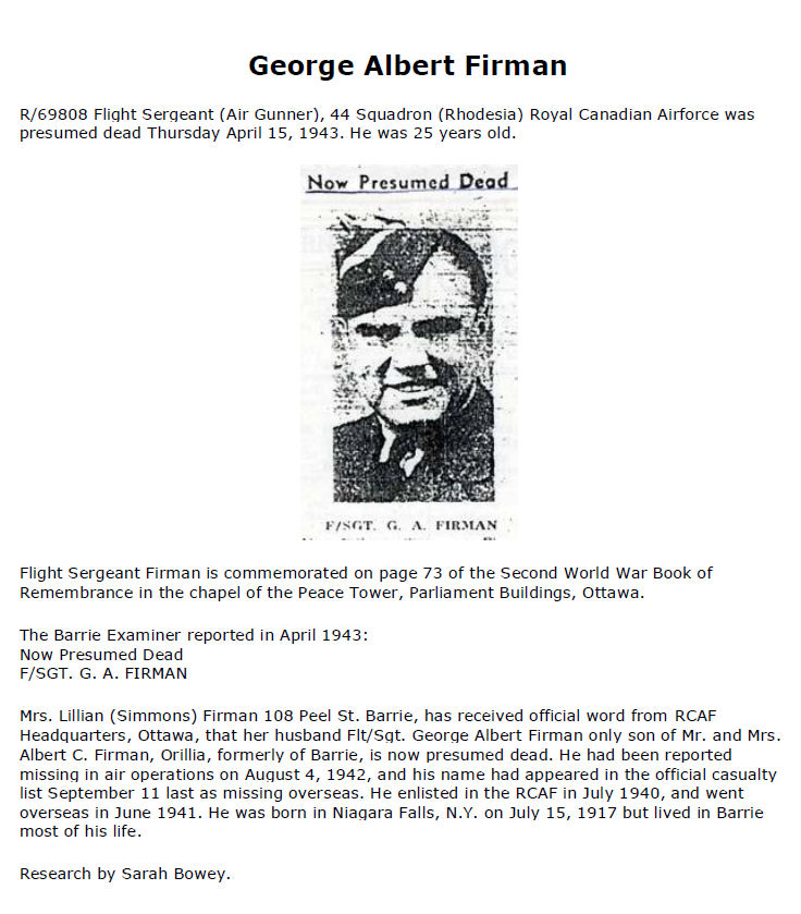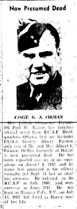 Son of Albert C. and Susan E. Firman. Husband of Lillian D. Firman, of Barrie, Ontario.