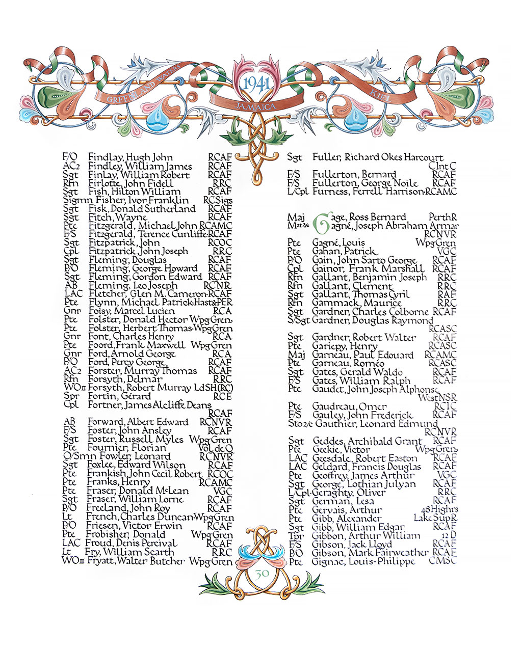 IN THIS CLOISTER ARE RECORDED THE NAMES OF TWENTY THOUSAND AIRMEN WHO HAVE NO KNOWN GRAVE. THEY DIED FOR FREEDOM IN RAID AND SORTIE OVER THE BRITISH ISLES AND THE LANDS AND SEAS OF NORTHERN AND WESTERN EUROPE