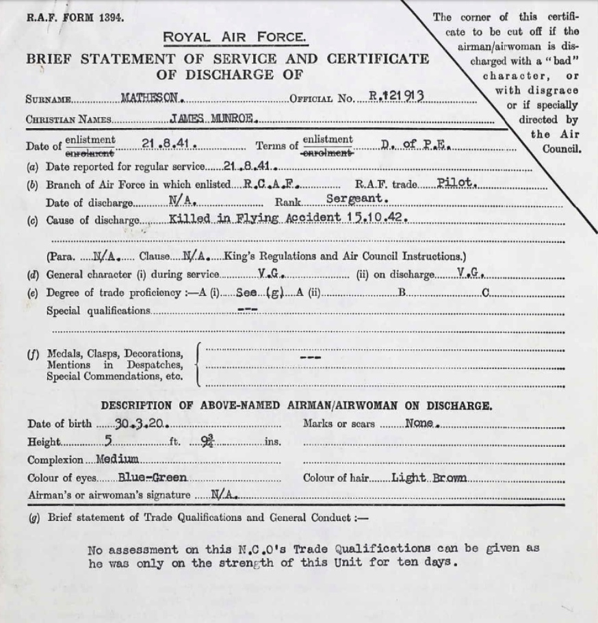 Son of D. A. Matheson and Helen McGinnis Matheson, of Portage La Prairie, Manitoba.