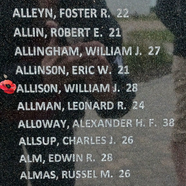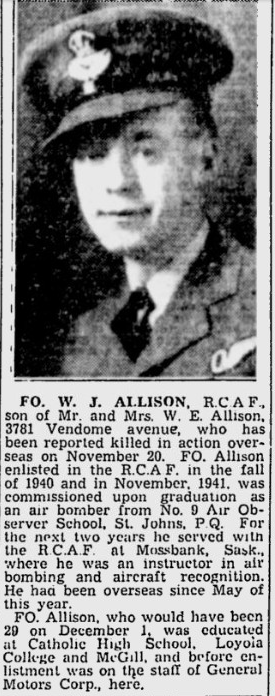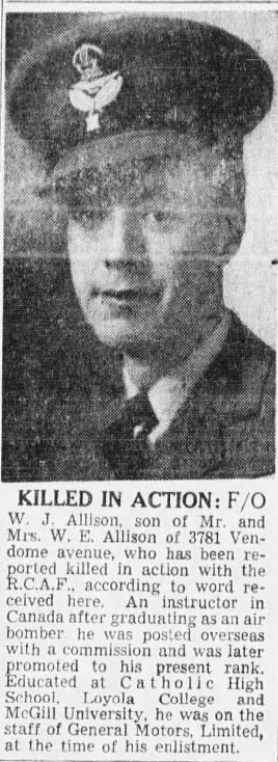 Flight Lieutenant Allison attended Loyola High School in Montreal before moving onto McGill University where he studied commerce. He also worked at General Motors. It was said he had a passion for flying and belonged to a gliding club. On his bureau sat a small plane that he carved.
