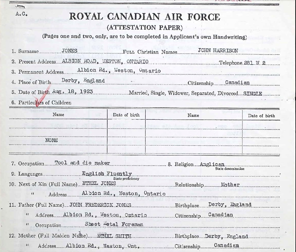 Son of John Frederick and Ethel Jones, of Weston, Ontario.