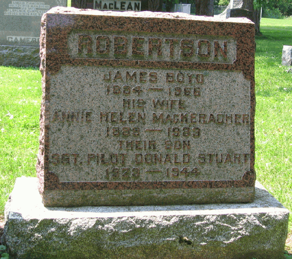 Son of James Boyd Robertson and Annie Helen Robertson, of Outremont, Province of Quebec, Canada. Sec