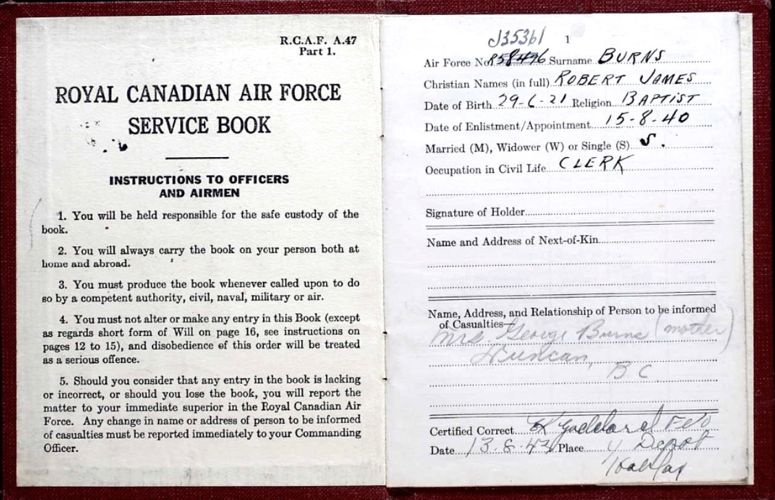 Digital gallery of Flying Officer Robert James Burns