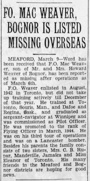 Digital gallery of Flying Officer Howard Mcelroy Weaver