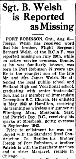 Digital gallery of Pilot Officer Bernard Eugene Welsh