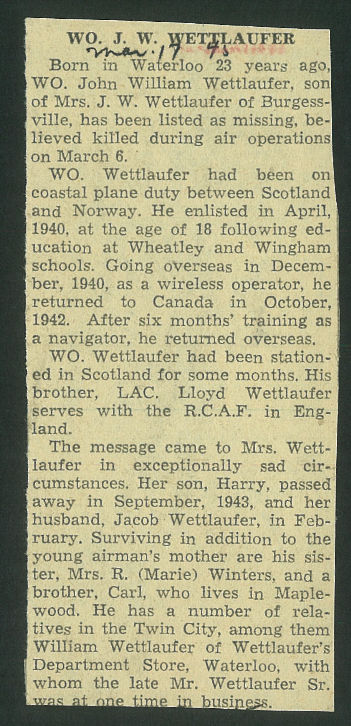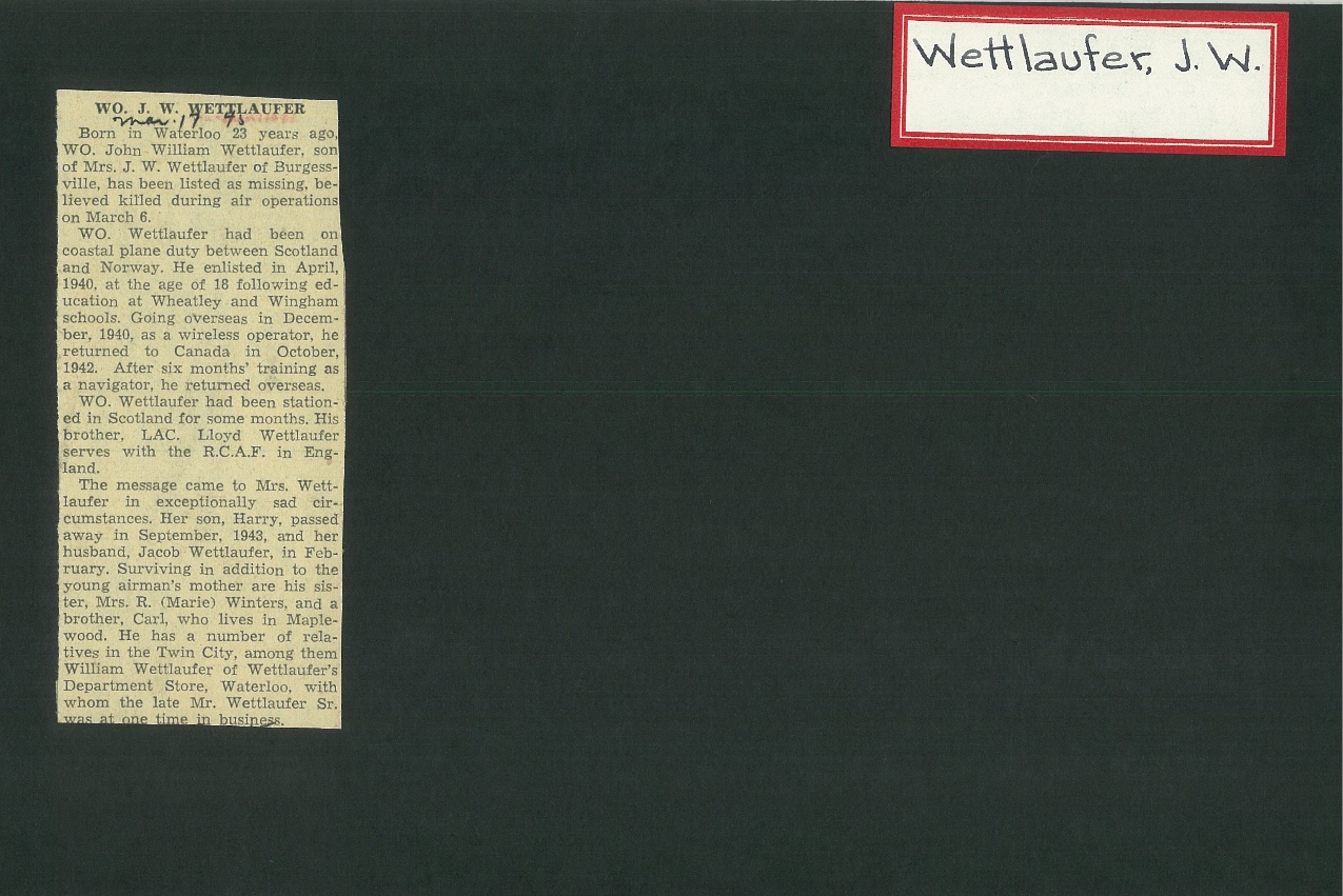 Son of Jacob William Wefflaufer, and of Emma May Wettlaufer, of Burgessville, Ontario, Canada.