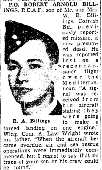 Digital gallery of Pilot Officer Robert Arnold Billings