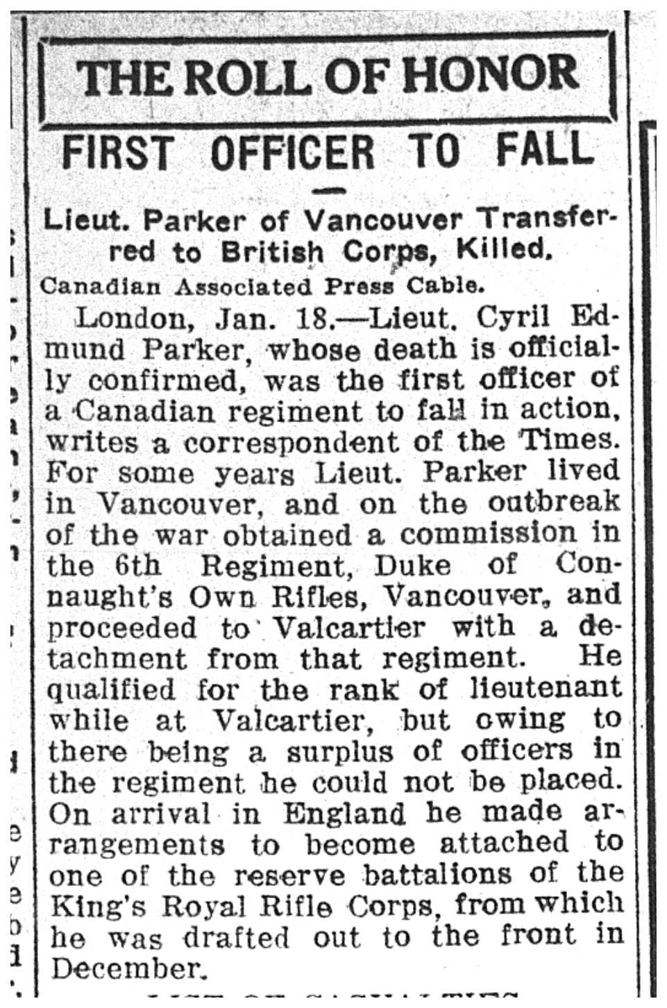 Digital gallery of Second Lieutenant Cyril Edmund Parker