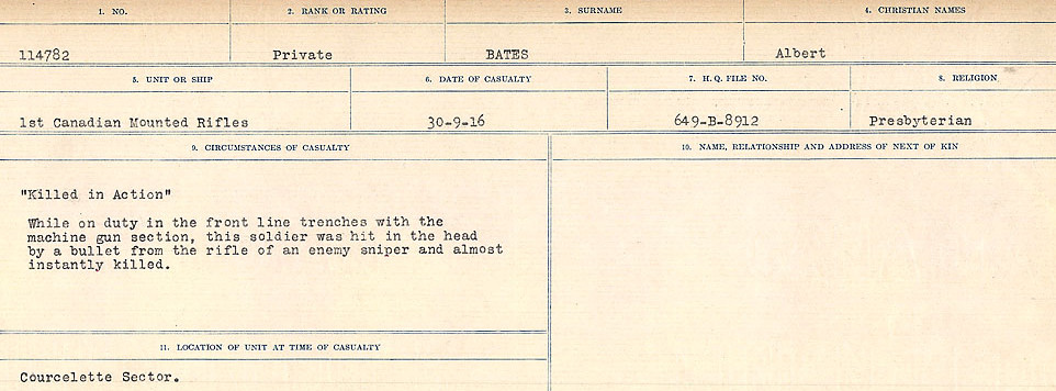 Unit/Regiment: 1st Canadian Mounted Rifles (Saskatchewan Regt.)