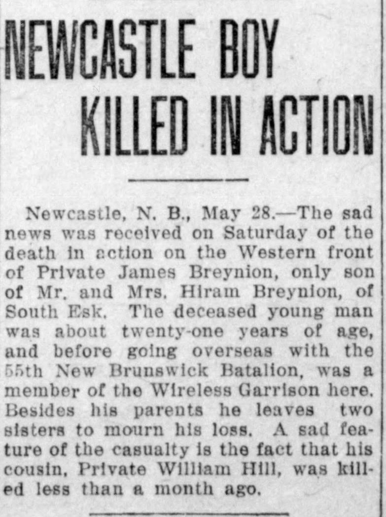 Only Son of Hiram H. and Agnes Braynion, of Newcastle, New Brunswick.
