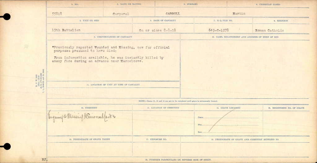 Son of Edward and Jane Carroll (Nee O'Grady).
